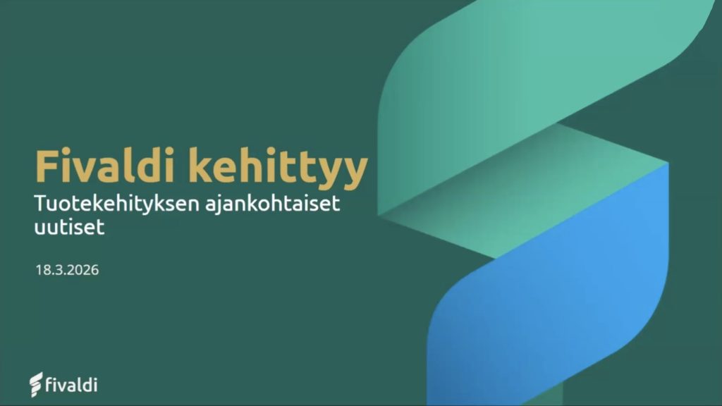 Webinaareja Tekoäly: eKlubitalo eKlubitalo 10.3.2026 Webinaari Tekoäly: GenAI GenAI 17.3.2026 Webinaari Visma Fivaldi Fivaldi kehittyy 18.3.2026 Webinaari